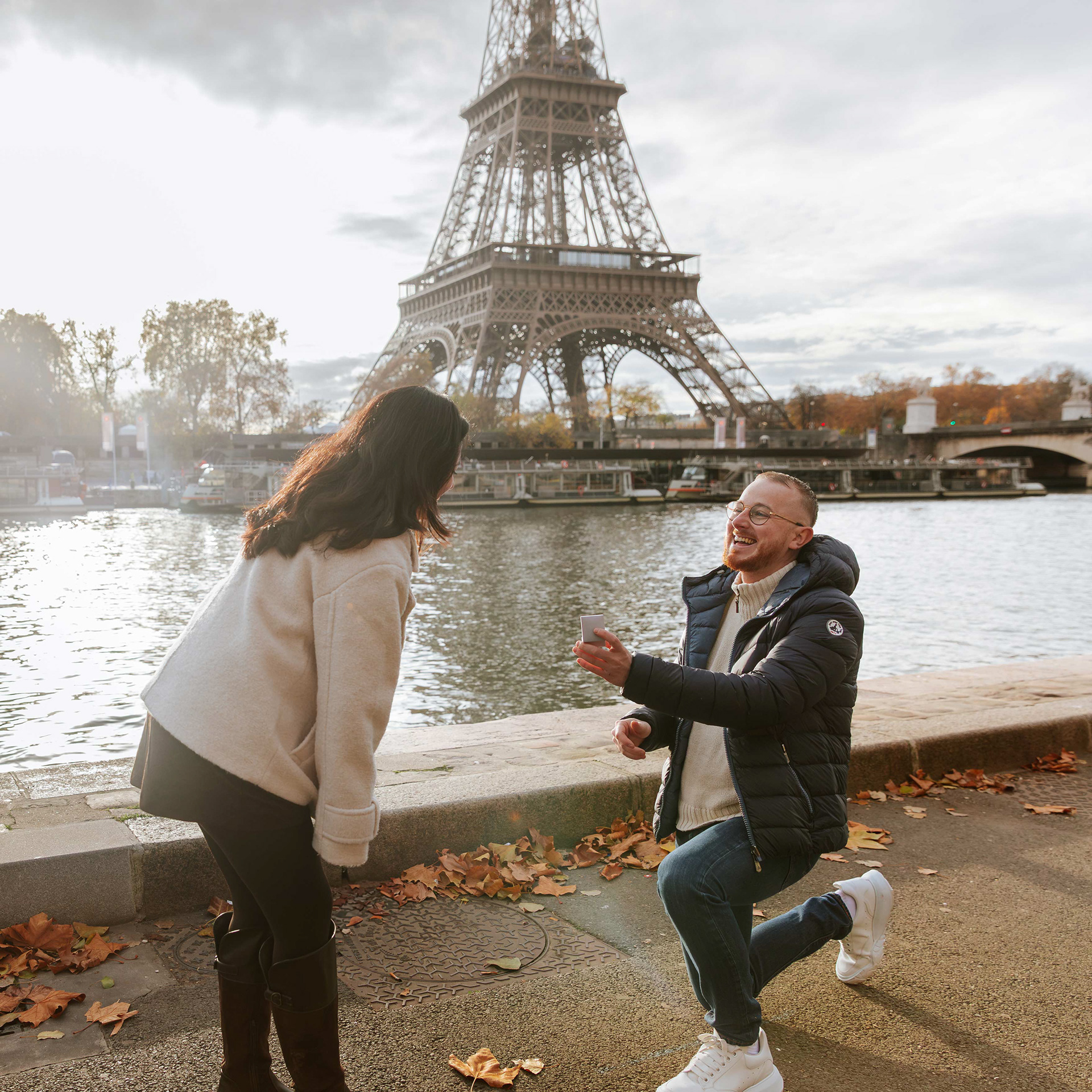 Love stories deserve the most beautiful stage, and there’s no place quite like Paris to tell them. Here, you’ll find a collection of authentic moments, from intimate strolls along the Seine to life-changing surprises under the Eiffel Tower. Each gallery is a window into a unique connection, captured with heart and a touch of Parisian magic. I invite you to browse through these stories and imagine what yours could look like.