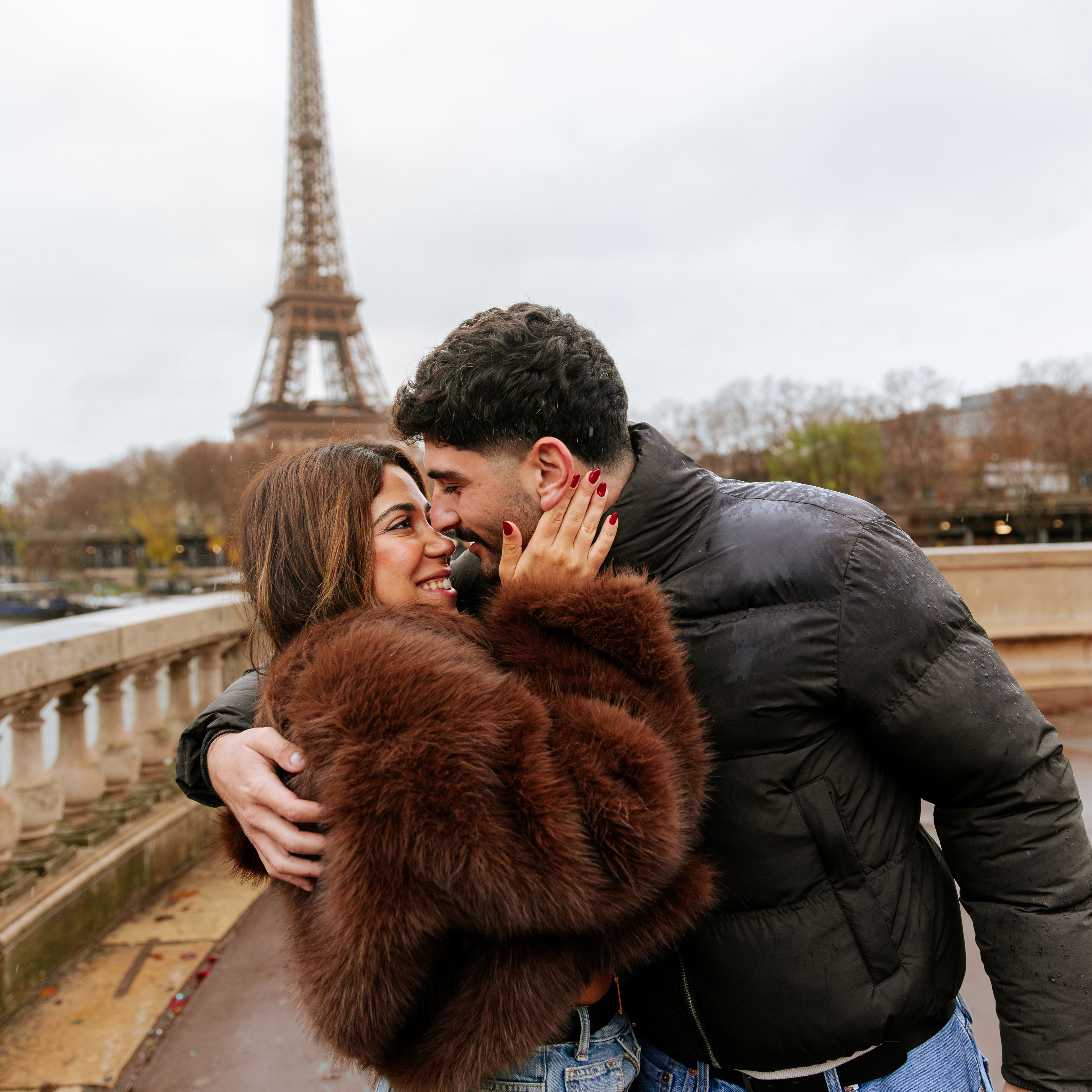 The Solution: We can use the elegant shelters of bridges like Bir-Hakeim or use transparent umbrellas that look incredibly cinematic in photos. Remember Andria & Constantino? Their rainy session became one of my most dreamy galleries ever.