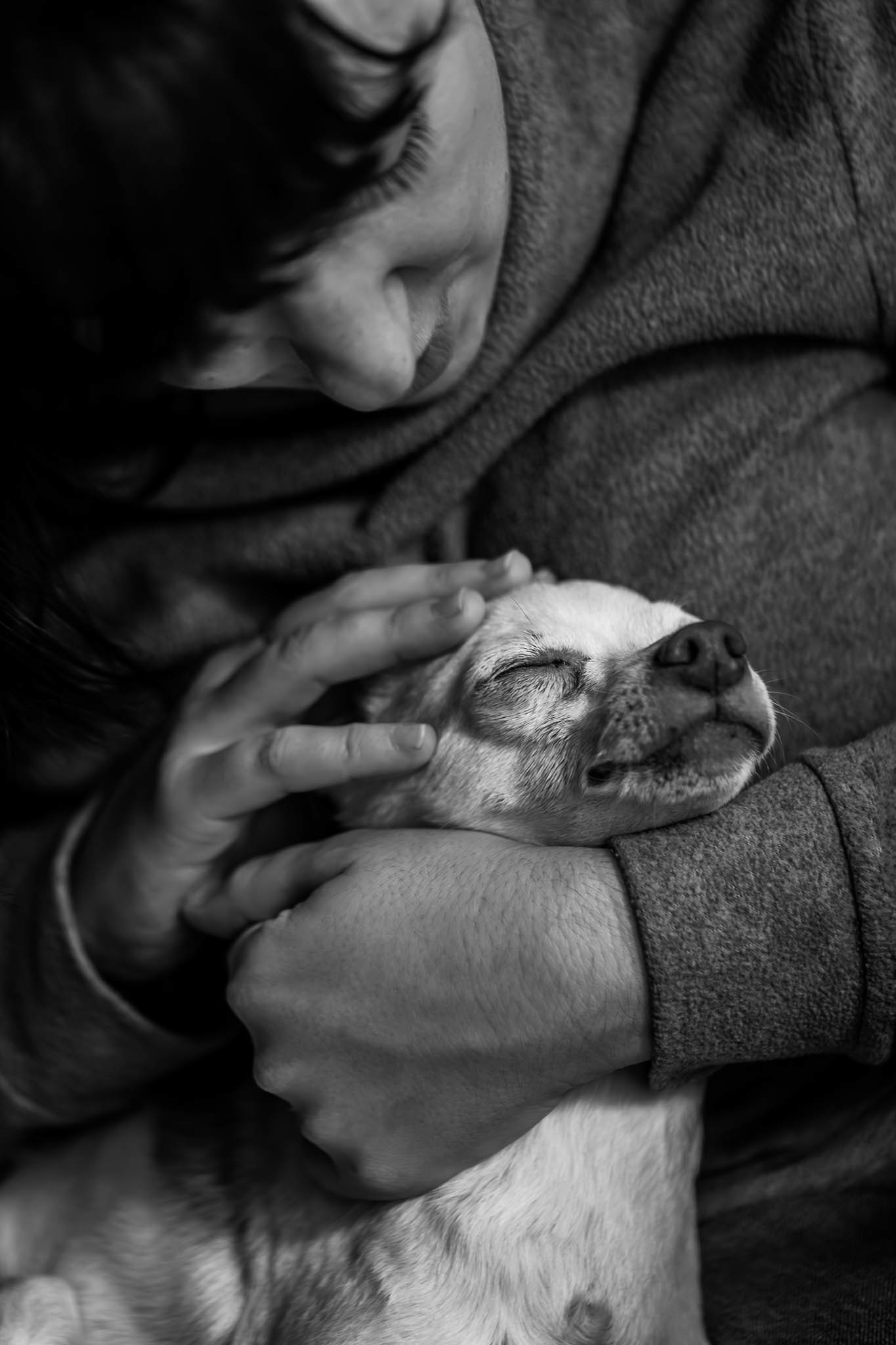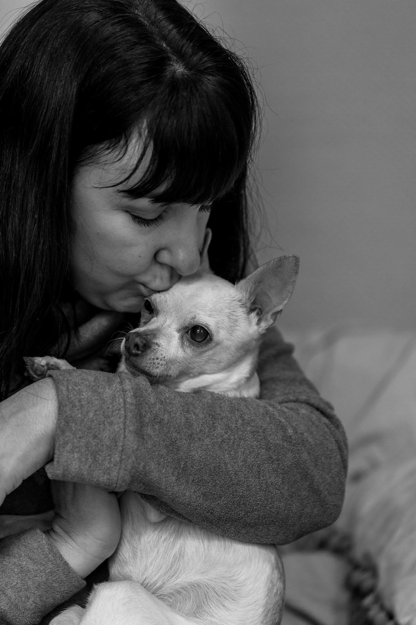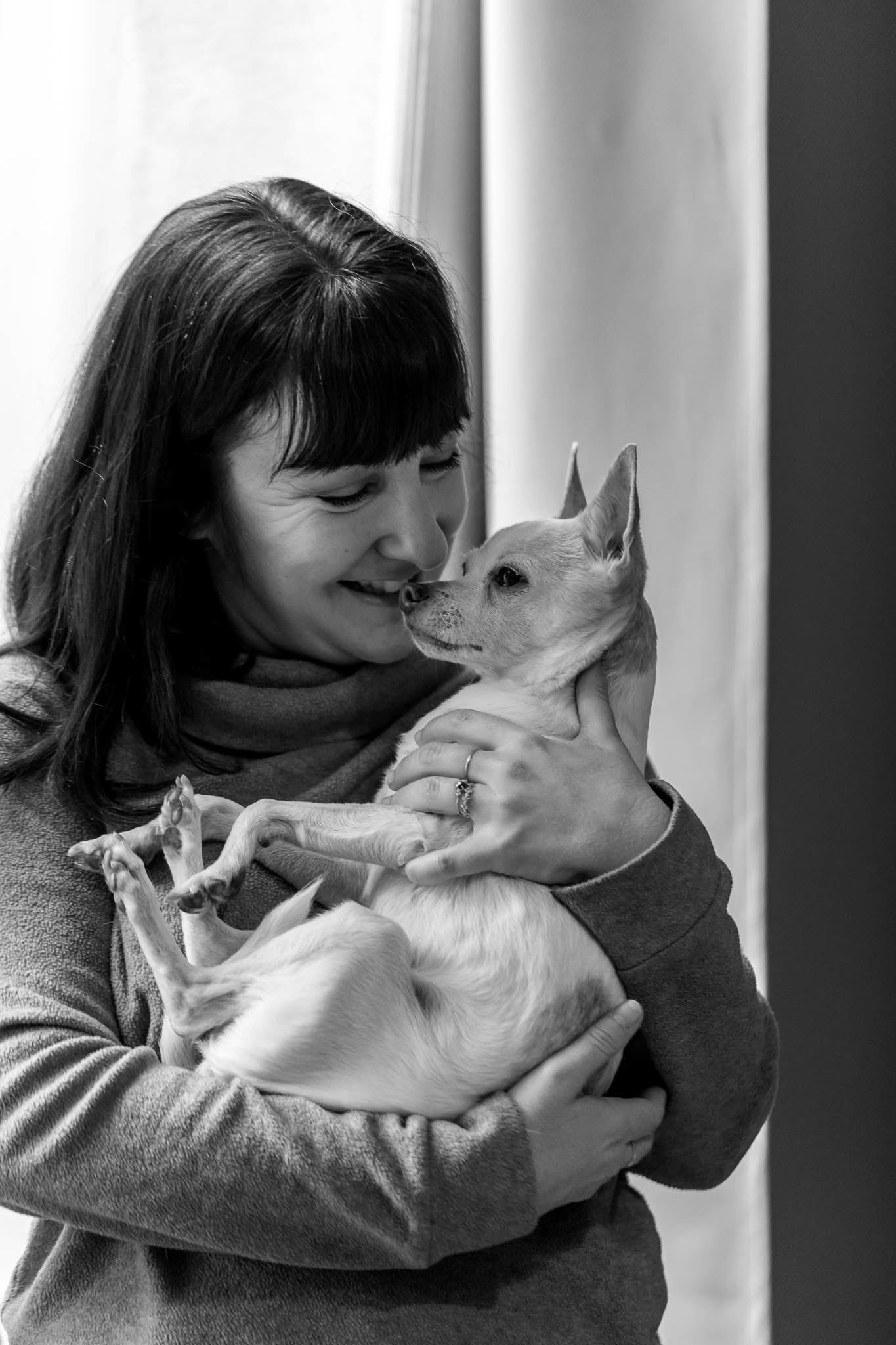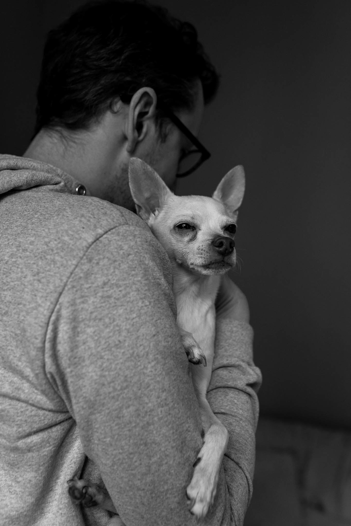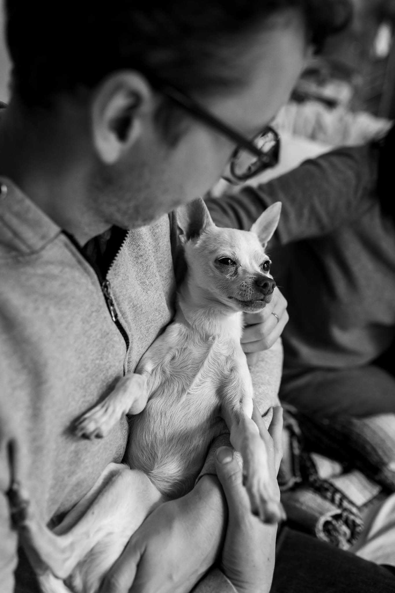 Hazel moved from the US to Paris with her parents a few years ago. Now, at 16 years old and living with dementia, her family wanted to treasure the last moments they could share with her in their Parisian home. During the session, Hazel was calm, surrounded by the love of those who have been by her side all her life. Between cuddles and tender looks, we captured what truly matters: the connection and the unconditional love that will live forever through these photographs.