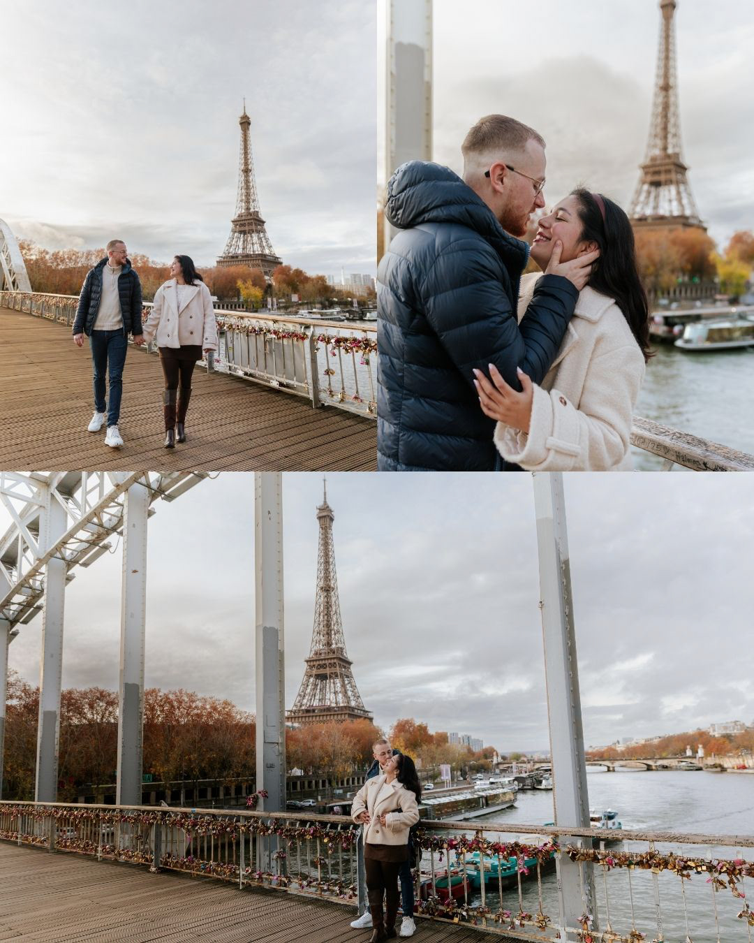 - The Eiffel Tower appears beautifully from the sides and the center of the bridge.